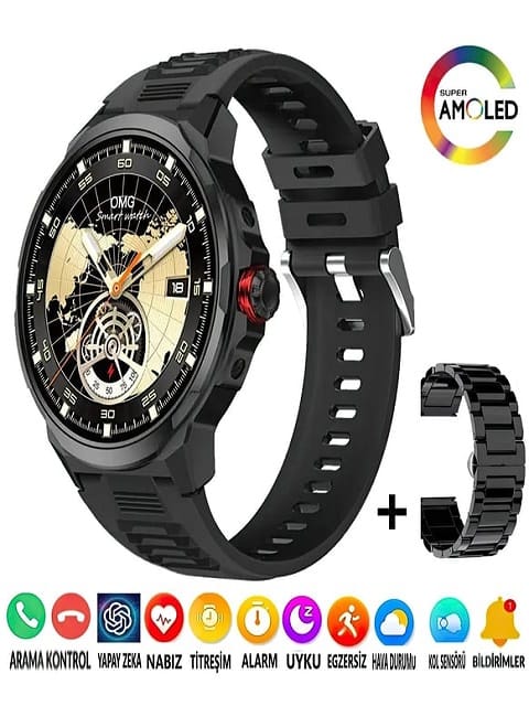 Kalobee SK50 İş Saati Serisi 1,93 İnc Amoled Ekranlı Akıllı Saat 2 Kordonlu