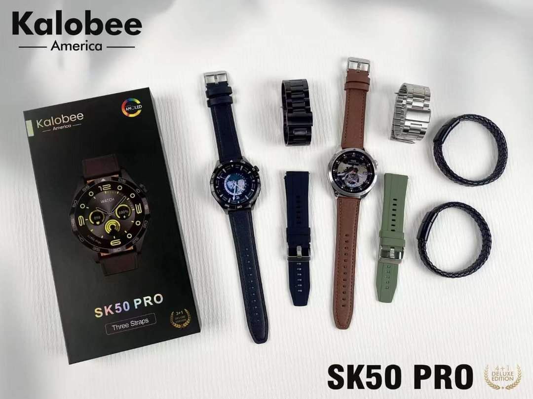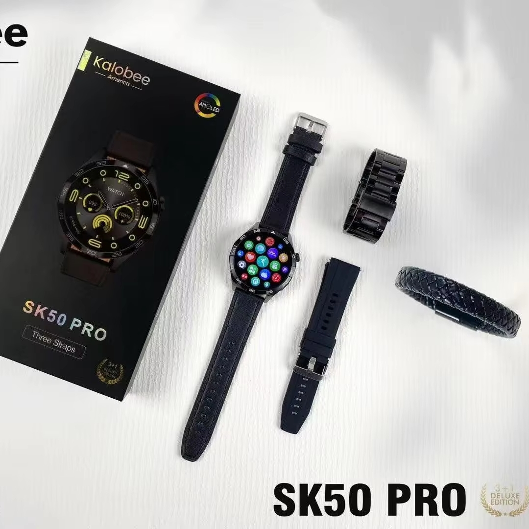 Kalobee SK50 pro İş Saati Serisi Küçük Zarif Amoled Ekranlı Erkek Akıllı Saat 3 Kordonlu Bileklik Hediyeli