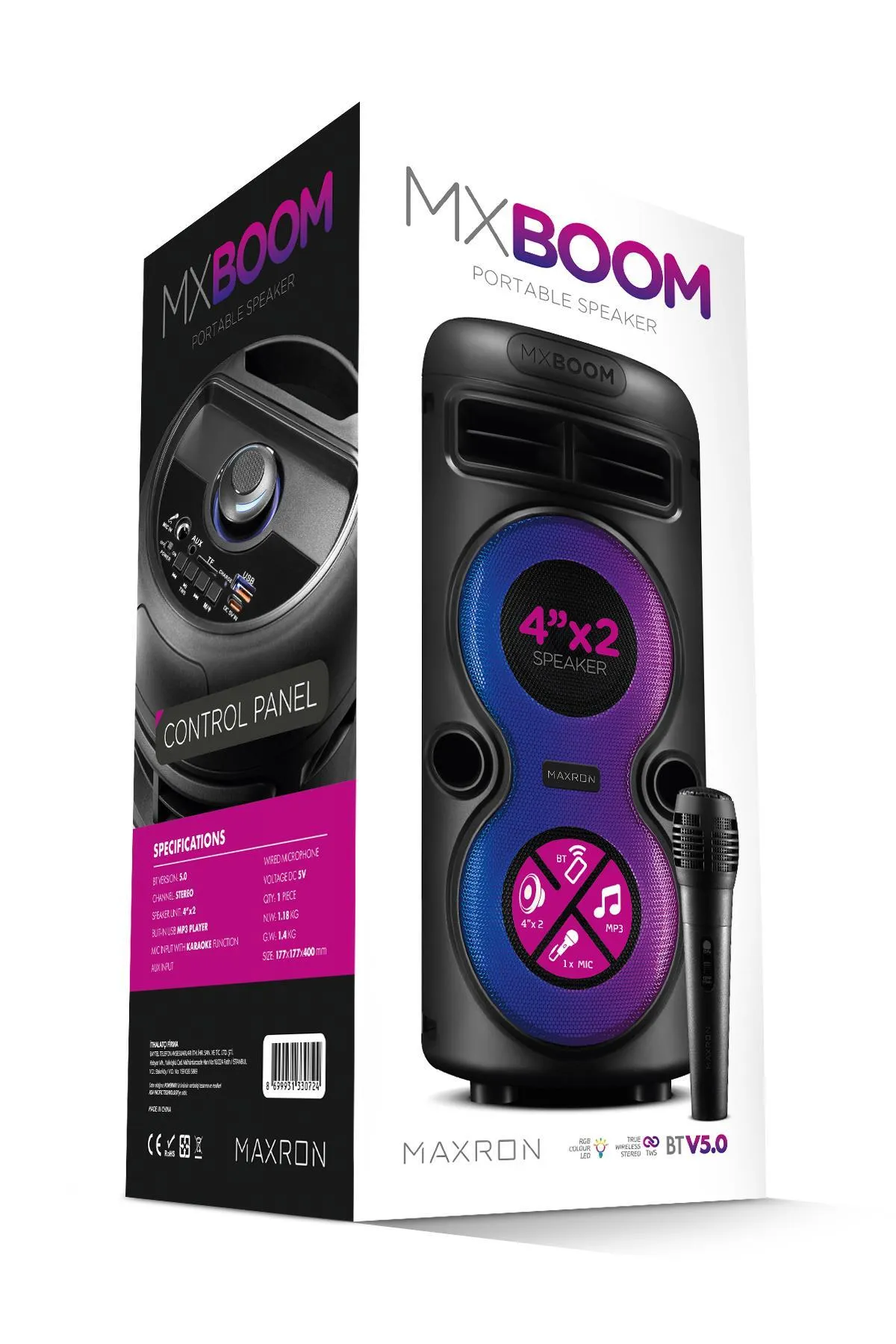 Maxron MXBoom Karaoke Mikrofonlu Bluetooth Hoparlör Parti Led Işıklı Ses Sistemi,