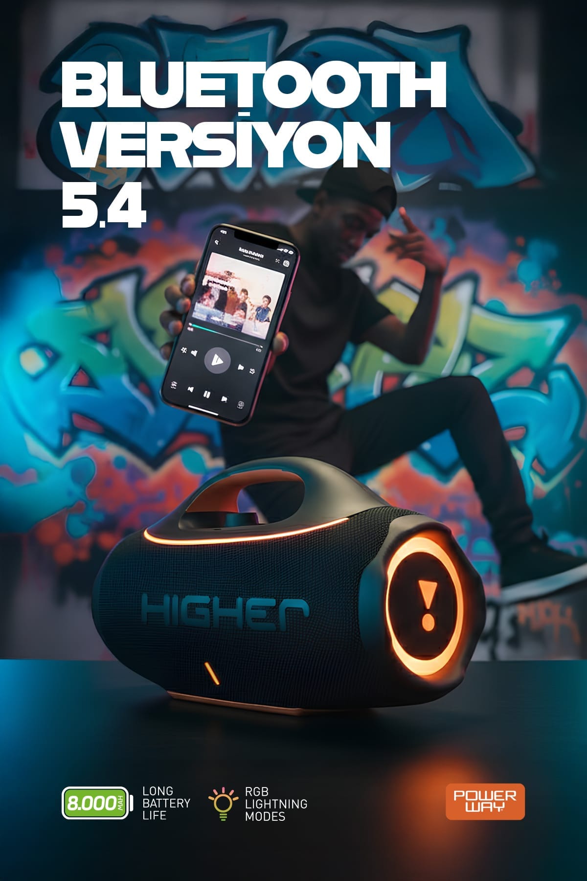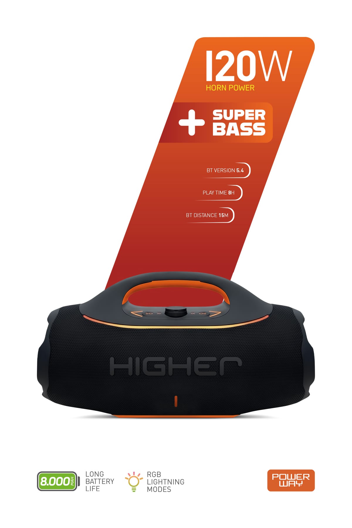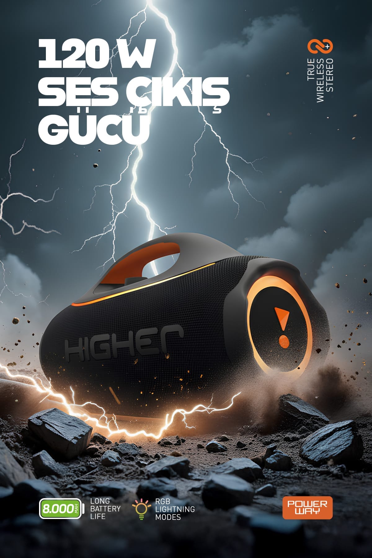 Sayfa linki: https://cetinkayahome.com/urun/powerway-higher-120w-4x-guc-usb-hafiza-karti-aux-fm-led-isikli-bluetooth-hoparlor-8000-mah-ses-bombasi/